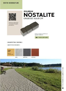 Kostka Brukowa Nostalite to produkt o klasycznym kształcie z miękko zaokrąglonymi krawędziami, stanowiący współczesną interpretację tradycyjnego bruku. Nadaje otoczeniu przytulny charakter i doskonale pasuje do przestrzeni klasycznych oraz historyzujących, choć może również stanowić ciekawy element kontrastujący w nowoczesnych aranżacjach.