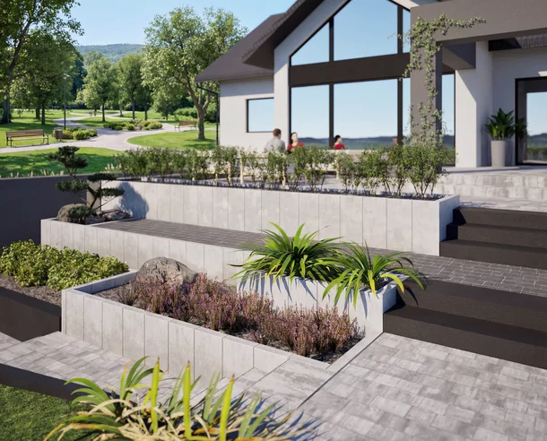 Smukła forma palisady pozwala tworzyć uporządkowane, geometryczne kompozycje, które idealnie wpisują się w nowoczesne projekty architektury krajobrazu. Produkt można wykorzystać zarówno jako: