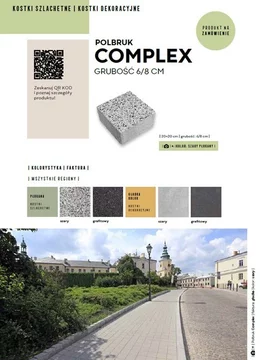 Kostka Brukowa Complex, o klasycznym kształcie kwadratu, jest polecana osobom preferującym minimalizm i prostotę formy. Stanowi doskonałe rozwiązanie do tworzenia funkcjonalnych nawierzchni wokół domu, a także w przestrzeniach publicznych, takich jak place, pasaża czy promenady.